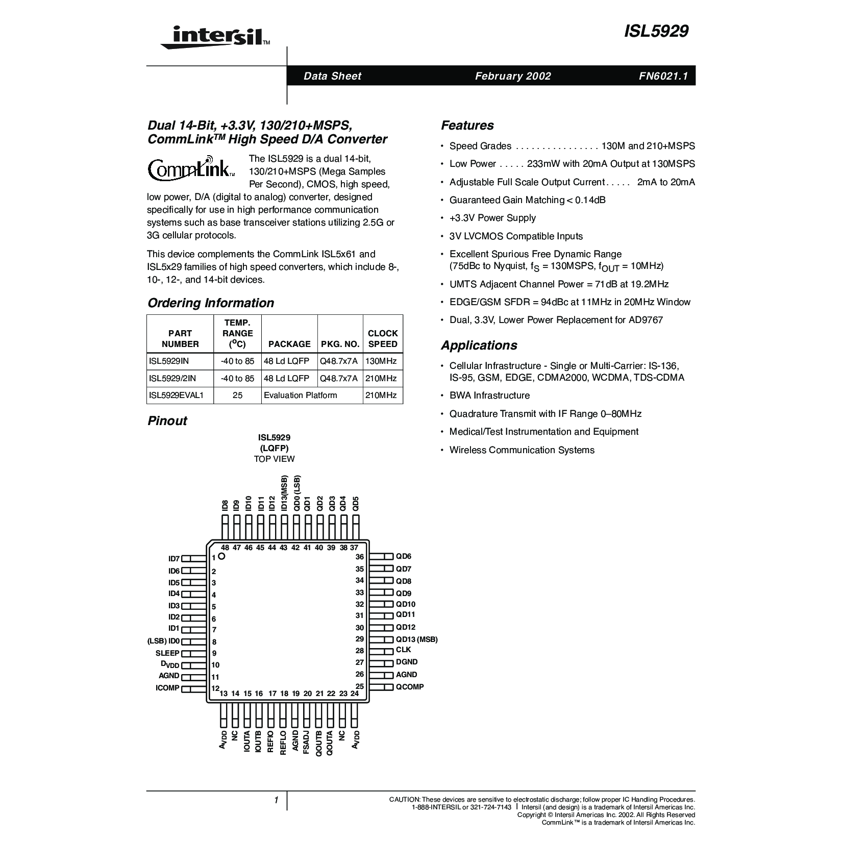 isl5929in 最低价格115.00元 ,最高价格115.00元 ,平均价格 115元